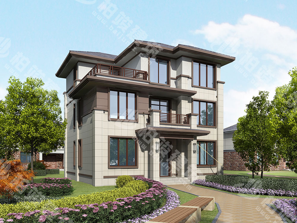 屋顶造型:沥青瓦铺设坡形屋顶,多个立面层次丰富