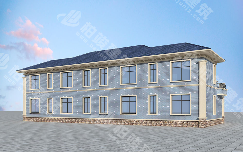 屋顶造型:墨蓝色沥青瓦铺设多立面坡形屋顶,自带粗粝纹路感,清新质朴