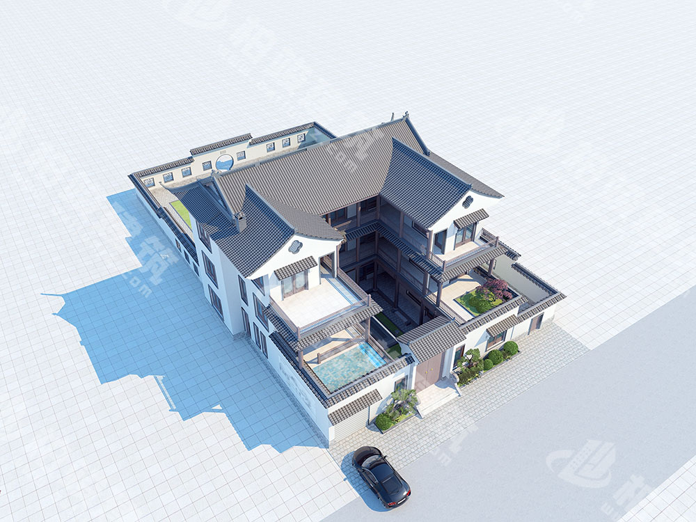 屋顶造型:传统悬山顶+歇山顶造型,后院带飞檐,宫殿般的大气磅礴